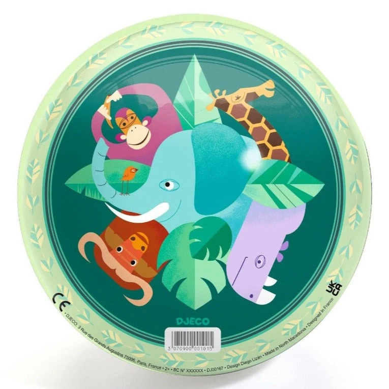 DJECO bal met savanne dieren is een speelbal om lekker mee de tuin in te gaan. Een lichte speelbal met een leeuw, kokodil en zebra voor peuters met een doorsnede van 22 cm.