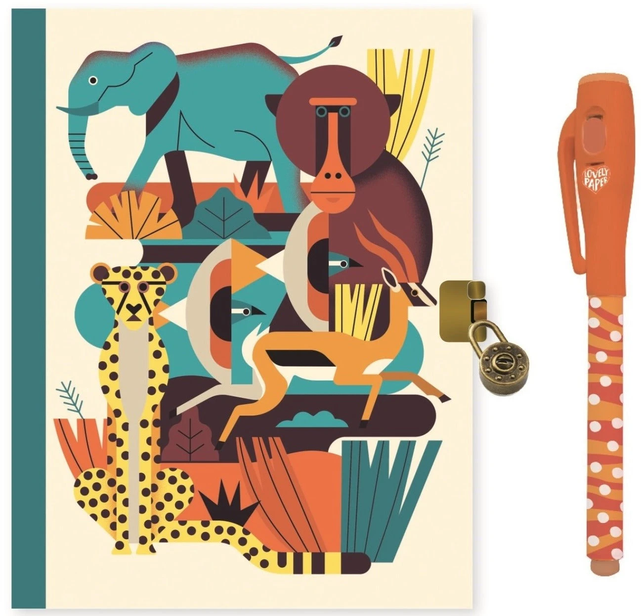 DJECO dagboek met slot en magische pen, het A5 dagboek is geillustreerd door Owen Davey met wilde dieren, geschikt voor kinderen vanaf 6 jaar.