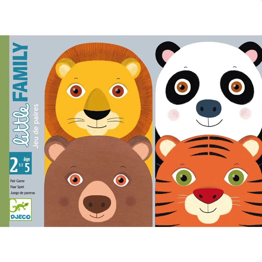 Kaartspel van DJECO voor peuters vanaf 2.5 jaar. De speelkaarten van het Little family spel zijn waterafstotend en flexibel, speciaal voor de allerkleinsten. Een leuk spel om samen te spelen.