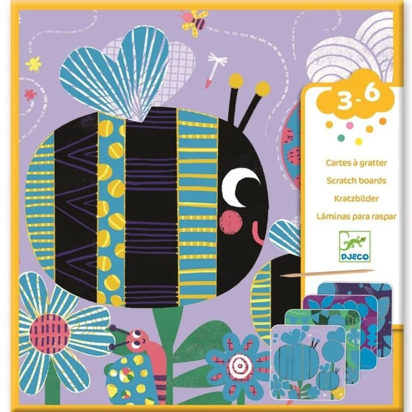 Ontdek vele verrassingen met de kraskaarten “Allemaal beestjes” van het Franse merk DJECO. Kras met de bijgeleverde kraspen over de kaarten en maak mooie motieven of ontdek de grappigste beestjes. De set bestaat uit 4 kaarten met afbeeldingen van beestjes en een houten kraspen.