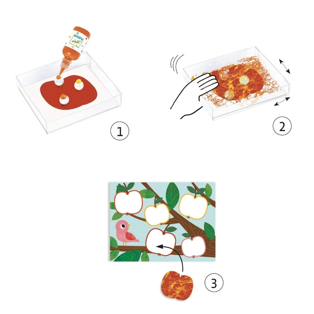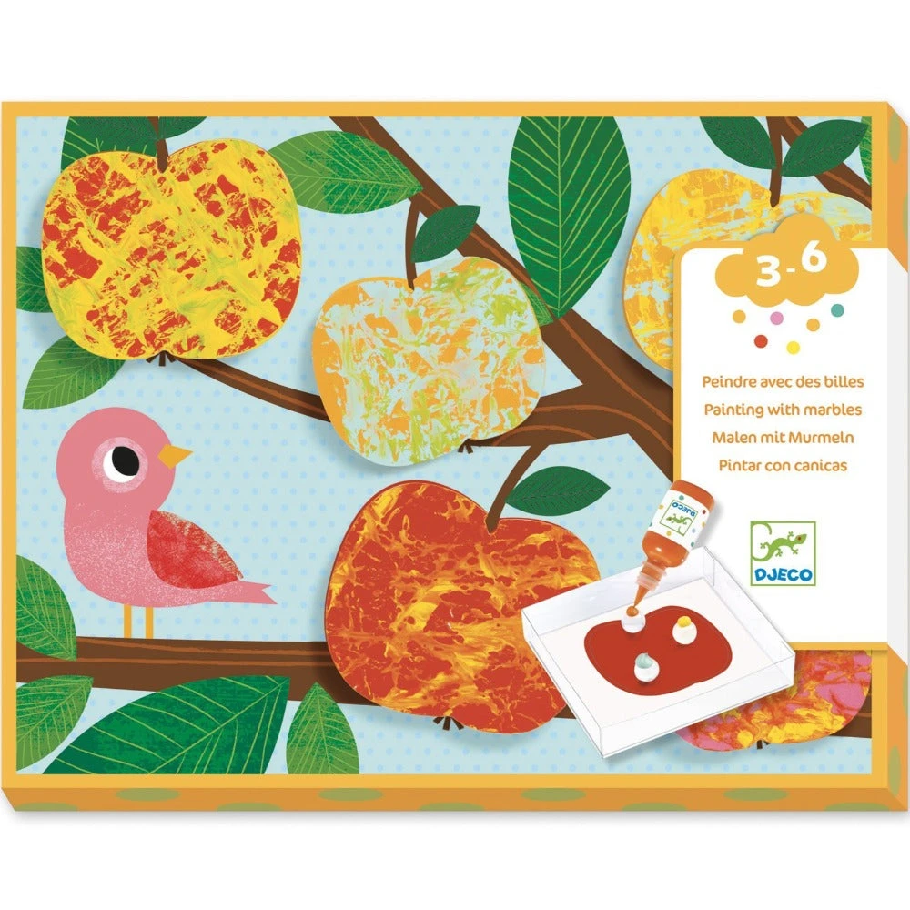 Het knutselpakket van DJECO schilderen met knikkers voor kinderen vanaf 3 jaar. Met deze originele knutselset maak je de meest bijzondere kunstwerken.