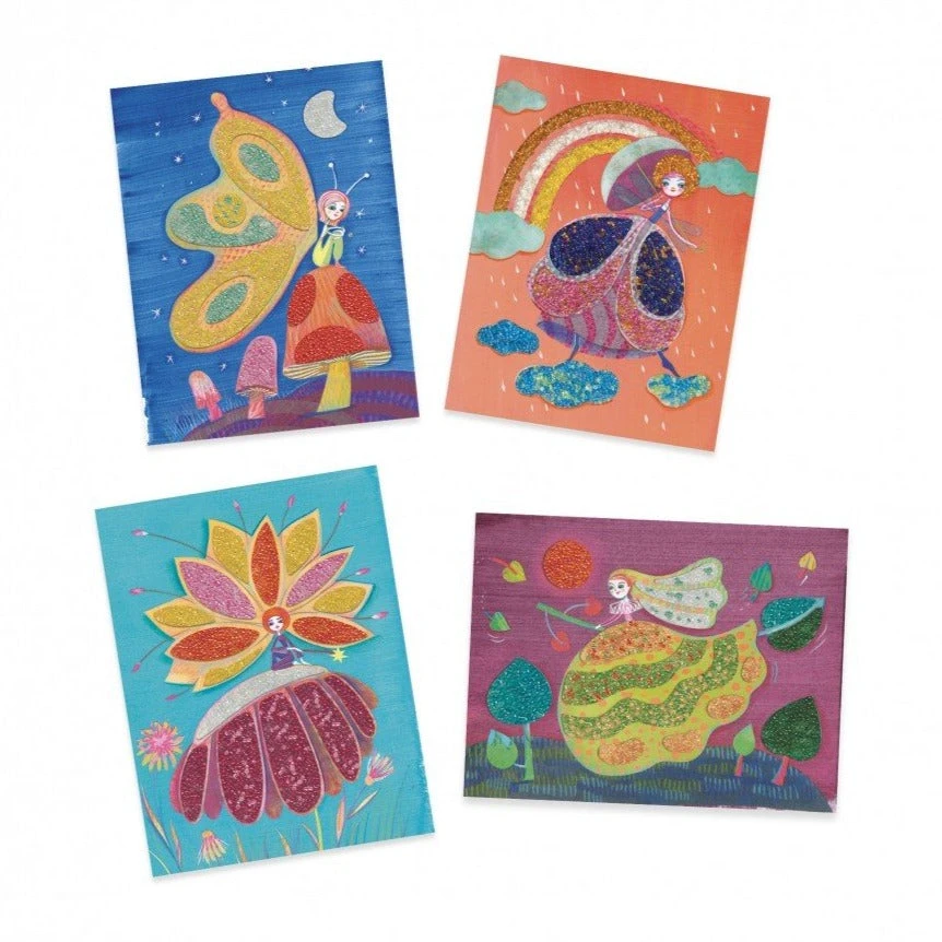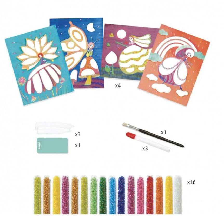 Met DJECO knutselpakket kralenschilderijen Feeën maak je de mooiste schilderijen. Een knutselset voor kinderen vanaf 6 jaar met een prachtig resultaat: glanzende sprookjesachtige feeën .