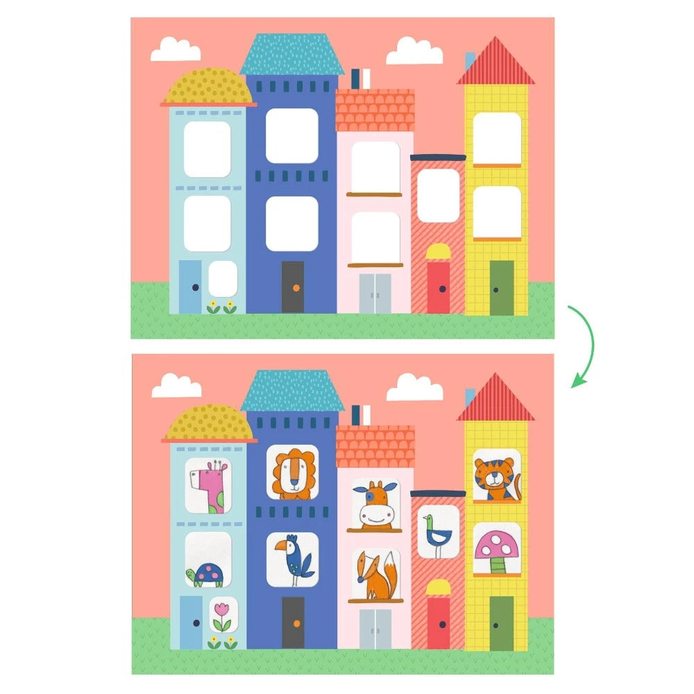 De kuntselset bestaat uit 8 grote prenten waar je 30 verschillende dieren aan toe kunt voegen. De dieren die je over kunt trekken staan op 15 verschillende kaarten met elk 2 dieren. Incl een potlood en 4 viltstiften.
